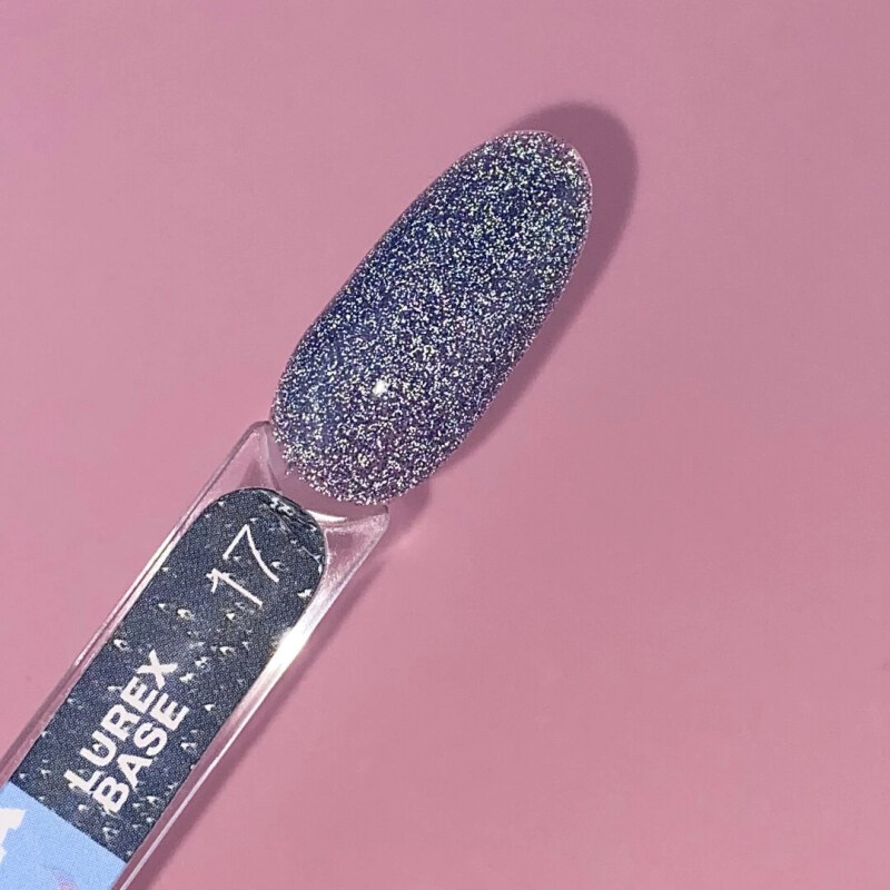 Lurex Base №17 – это камуфлирующая светоотражающая база. При включении вспышки она начинает сиять и смотрится магически, ведь содержит в своей консистенции блестки.