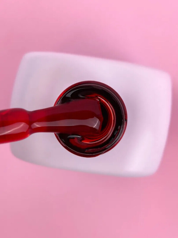 - Наносим гель-лак (1–2 тонких слоя). Набираем материал на кисточку и тонким слоем прорисовываем центр ногтя, а затем боковые стенки. Можно использовать в качестве отдельного покрытия и можно наносить на подложку для создания глубины цвета. Всё зависит от задуманного дизайна. Сушим 60 секунд.