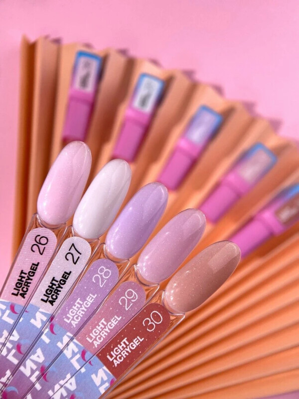 ЖИДКИЙ ГЕЛЬ LIGHT ACRYGEL — инновационный материал для укрепления, выравнивания и донаращивания ногтей. Это симбиоз полигеля и базы. Он состоит на 60–80% из акрилового сополимера (основной компонент полигеля) и небольшого количества гидроксиэтилметакрилата HEMA (около 20–30%), основного компонента базовых покрытий. Такой гель может полностью заменить базу.