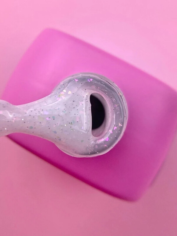 - Выравниваем гелем, помещаем в лампу и на 10–15-й секунде зажимаем. Если гель сильно липкий или содержит блёстки, зажимаем на 20-й секунде.