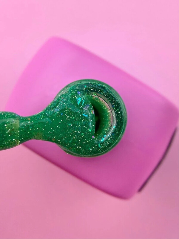 - Выравниваем гелем, помещаем в лампу и на 10–15-й секунде зажимаем. Если гель сильно липкий или содержит блёстки, зажимаем на 20-й секунде.