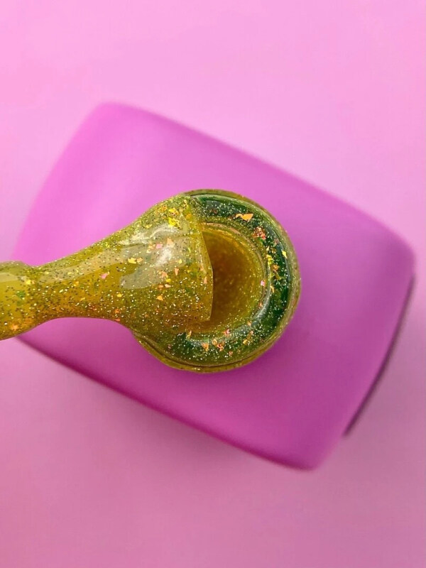 - Выравниваем гелем, помещаем в лампу и на 10–15-й секунде зажимаем. Если гель сильно липкий или содержит блёстки, зажимаем на 20-й секунде.