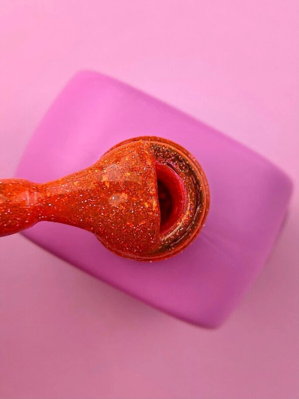- Выравниваем гелем, помещаем в лампу и на 10–15-й секунде зажимаем. Если гель сильно липкий или содержит блёстки, зажимаем на 20-й секунде.