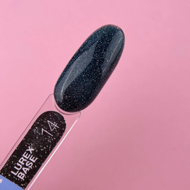 Lurex Base №14 — це камуфлююча світловідбиваюча база. При ввімкненні спалаху вона починає сяяти і виглядає магічно, адже містить у своїй консистенції блискітки.