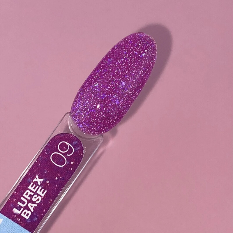 Lurex Base №9 — це камуфлююча світловідбиваюча база. При ввімкненні спалаху вона починає сяяти і виглядає магічно, адже містить у своїй консистенції блискітки.